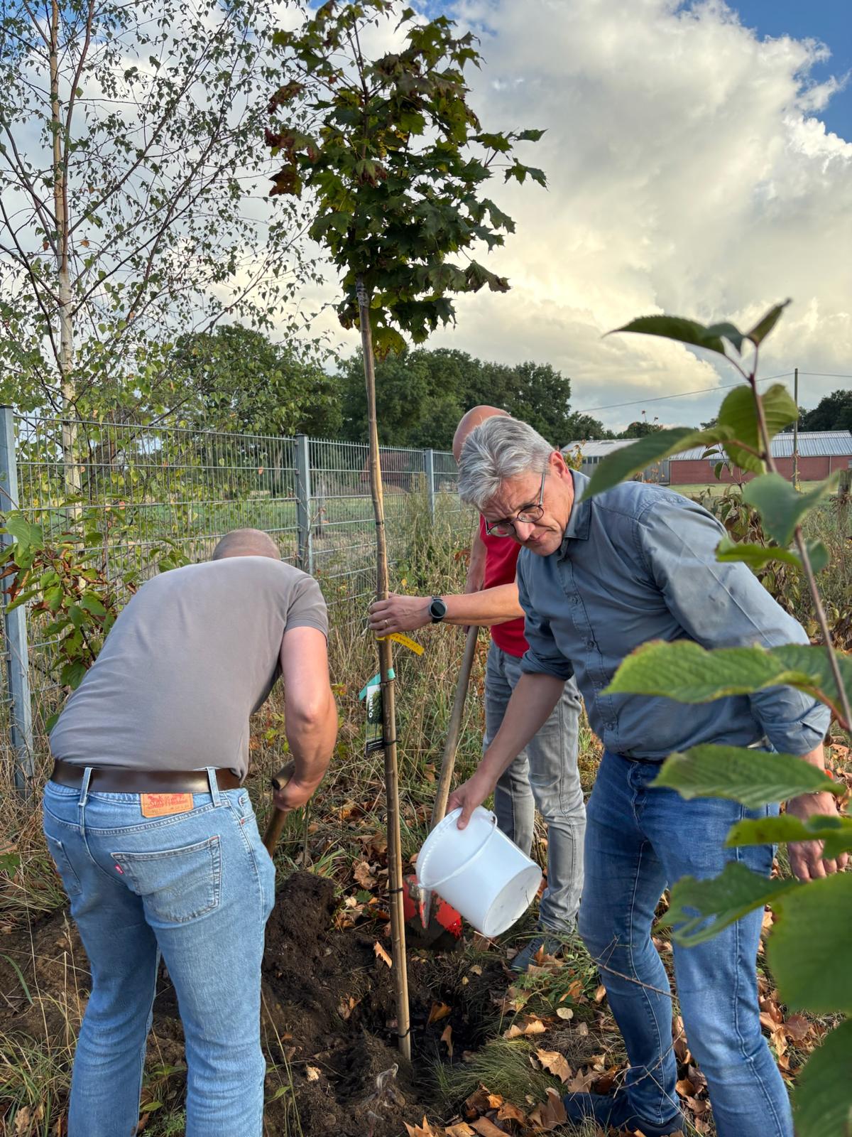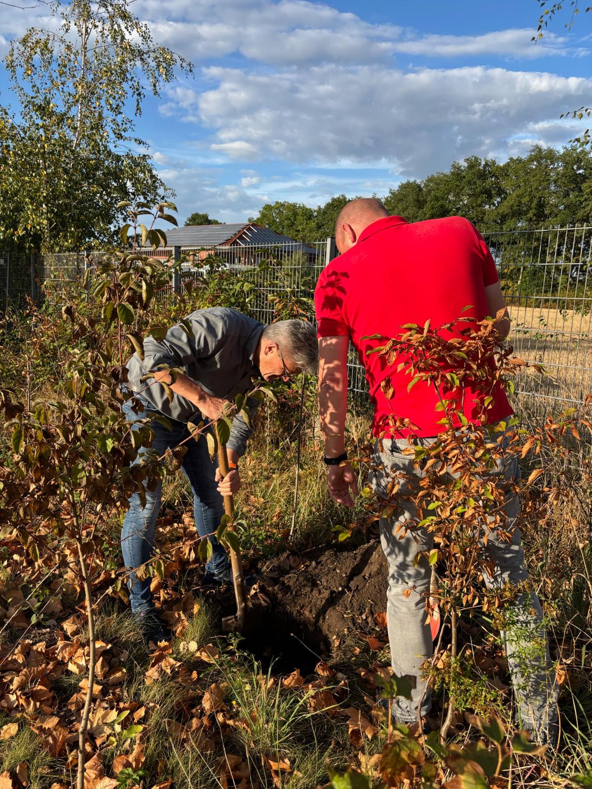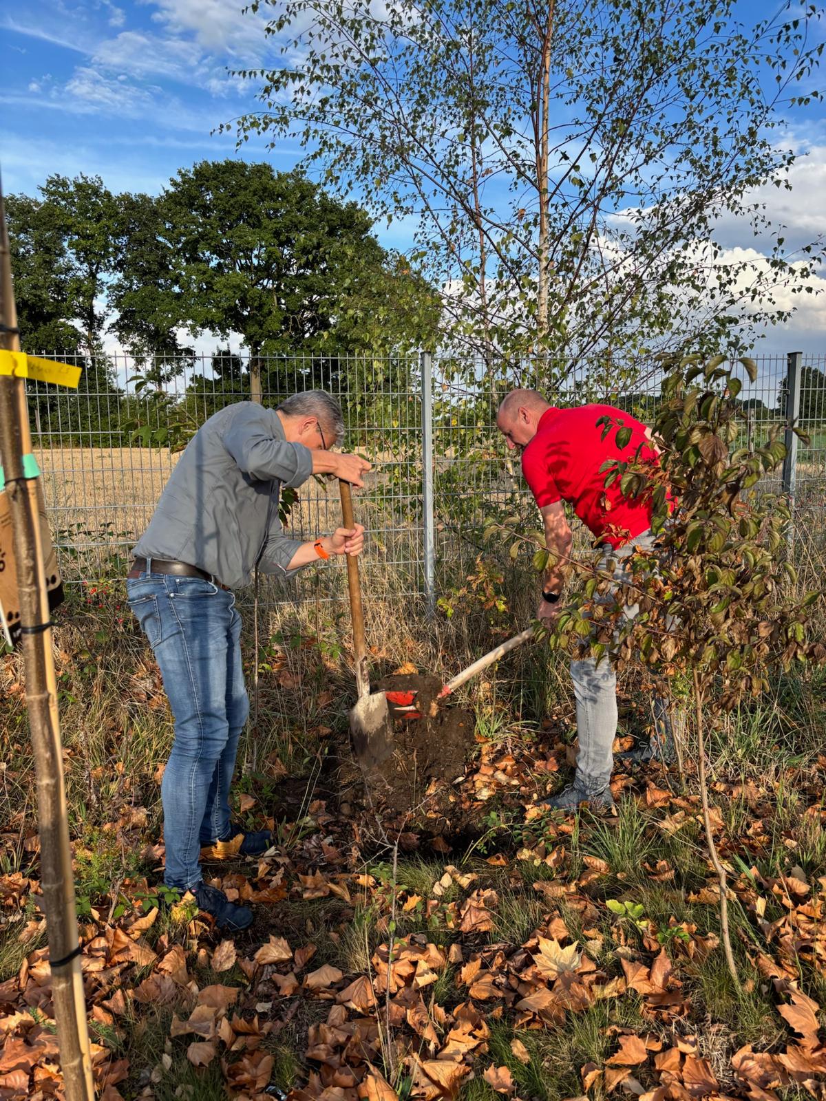 Mit viel Elan, einigen Blasen an den Händen und der einen oder anderen Diskussion, ob der Baum wirklich gerade steht, haben wir unser Pflanzwerk vollbracht – und zwar an einem ganz besonderen Ort: